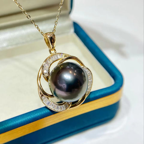 12-13mm Tahitian pearl pendent, S925 setting, 18k gold plated